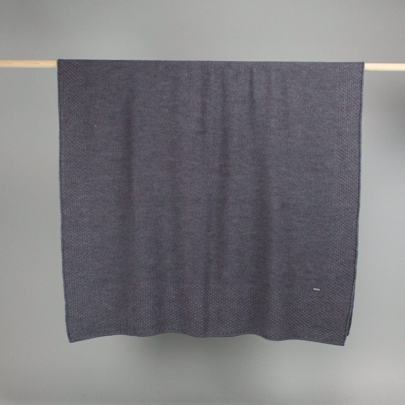 Enobarvna odeja v kateri se dopolnjujeta dva načina pletenja. Strukturiran rob obbdaja kašasto notranjost.